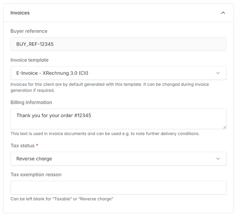 - Parallel e-invoice creation next to the normal invoice flow